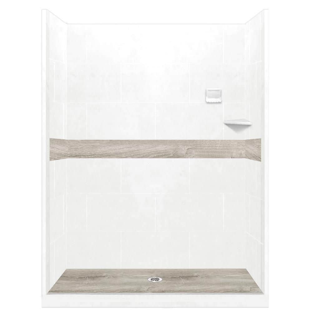 American Bath Factory Sterling Oak Pan And Walls 30 In X 60 In X 80 In Center Drain Alcove Shower Kit In Natural Buff And Chrome Hardware Ab6030nw1 C Ch The Home Depot